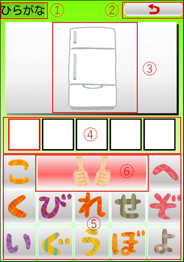 「ひらがな」はひらがなのカードが出題されます。